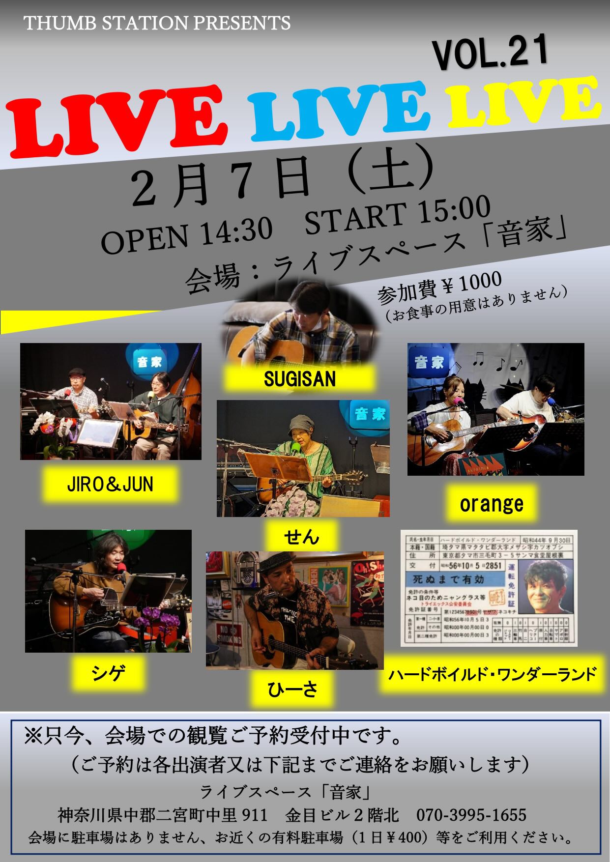 日時:2月7日(土) 14:30open 15:00start