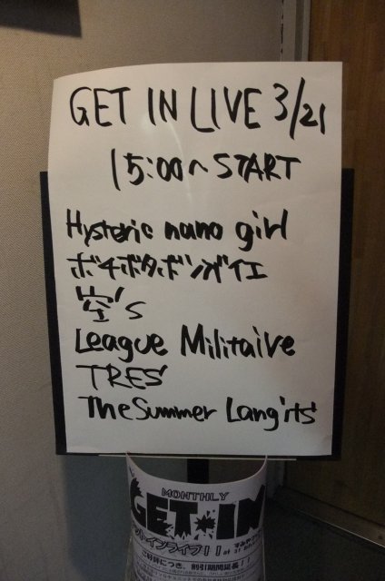 このGET-IN LIVEってTwo-Fiveの大人のチキチキコンサートと似ているのですが、違うのがノルマが発生すること。一バンド500円X20枚と参加費が一組3000円掛かる点ですね。