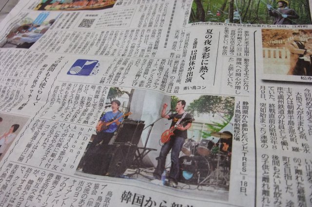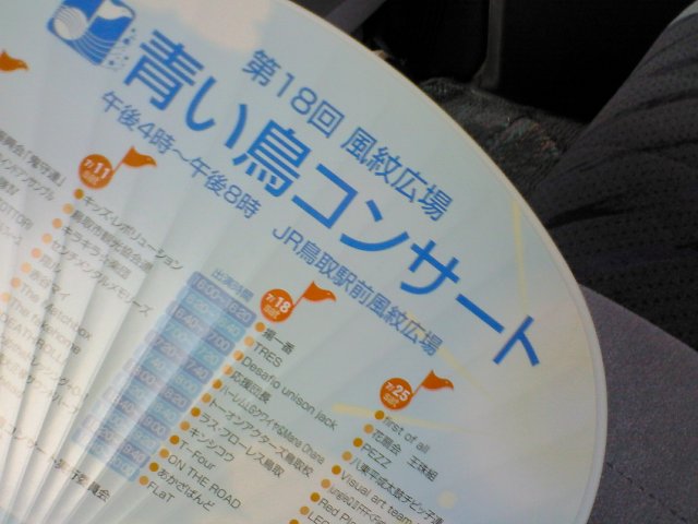 さてさて、下につらつらと鳥取観光の画像が載っていますが、何しに行ってきたのかと言うと、鳥取駅前で毎年行われている『青い鳥コンサート』に出演しに行ってきました。バンドで。