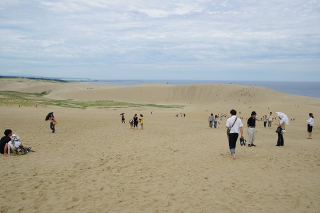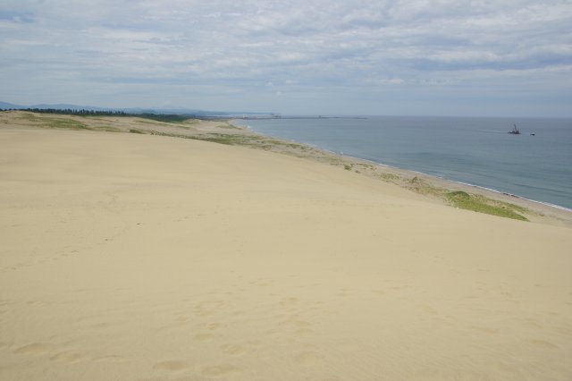 登り始めはカメラを肩からぶら下げていたのですが、1/3くらいのところで『このままぶら下げていたらいつすっ転んでカメラをダメにするか分からん』と思い、カメラをバックの中へ。そこからさらに登ったのですが、足が砂に取られて登りにくいってのもあり、結構時間が掛かりました。後々知ったのですが、この馬の背の高さは約45メールもあるんだとか。。。でも、登ってみる価値はありますよ。だって、砂頂に着くと目の前に広がるのは広大な日本海ですから\(^o^)/