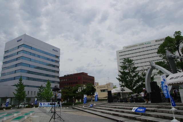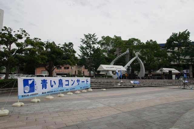 青い鳥コンサートは駅前にある"風紋広場"ってとこで行われます。もちろん屋根無し。なので雨が降ったら中止なわけです。昨日は雨が降っていたので平気かなぁと心配はしていたのですが、起きてみたら晴れ渡っているので安心しました。晴れてくれなきゃただの鳥取観光で終わってしまうので(爆)