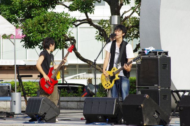 しかし、一週目の4日の日は雨で流れてしまったらしく、うちらみたいに遠方から参加予定のバンドは肩を落として帰って行ったらしいです。雨で流れてしまった場合は予備日として8月の第一週が割り当てられているのですが、遠方からの参加者は仕事の関係もあるのでそうは来れるはずもなく、また、4回あるうちの2回が雨で流れたら、予備日が大変な事になってしまうわけで。それを考えても晴れてよかったです。