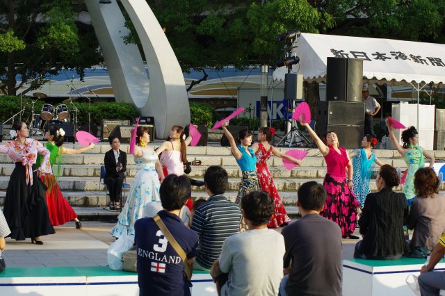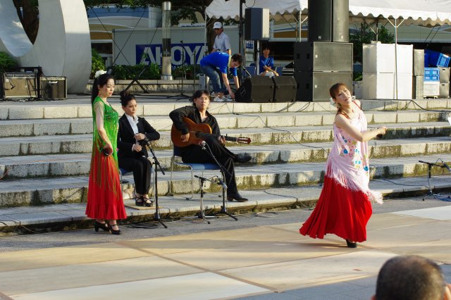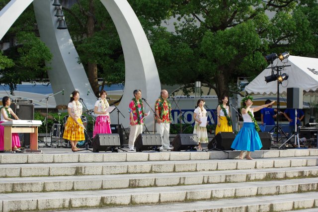画像のようにバンドだけではなく、ハワイアンやフラメンコなどの踊りも組み込まれています。先週は小学校の子供達による合唱もあったんだとか。