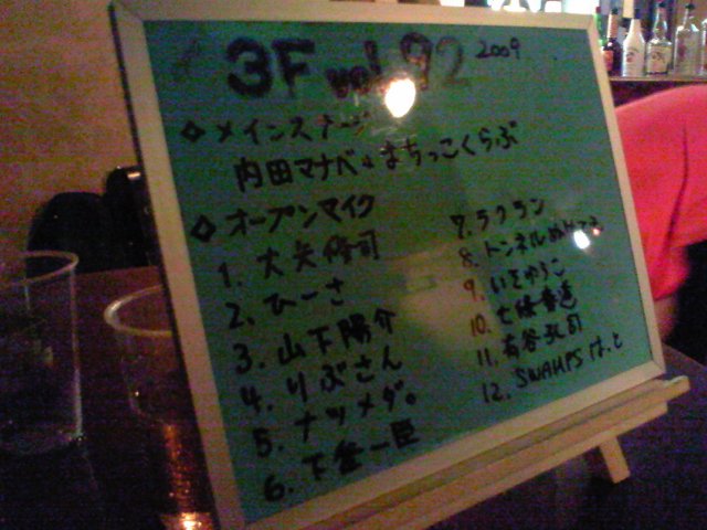 毎月第一日曜日に行われている、はっとさん主宰のイベ『3F』です。これは頭1時間がメインのステージで、その後はオープンマイクとなるイベントです。