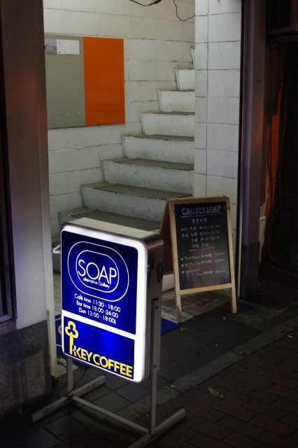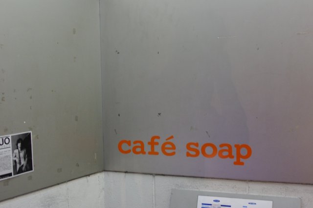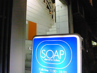 さらに「ここら辺のはずだが。。。」と歩いていて、見つけました!Gallery SOAP。一昨年に花田さんがここでLIVEを行った音源がCDになって出てます。なので探してみました。表の看板を見てみると、普段はCafeになっているようである。でも中に入らず駅前に戻り、きゅうちゃんと合流。そして「ちょっとさ、付き合ってくんない」とSOAPへ(笑)