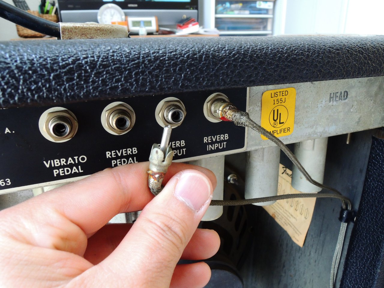 そして、ヘッドを出したついでに、Reverb・VibratoフットスイッチのRCA端子も交換しました。