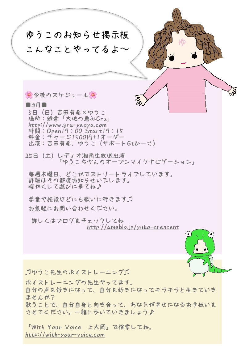 ゆうこ先生のblog → http://ameblo.jp/yuko-crescent/