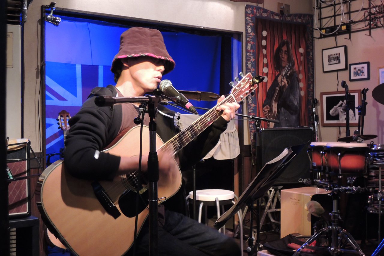 前回はメンバーの都合がつかず一人弾き語りでしたが、今回はバンドスタイルです。