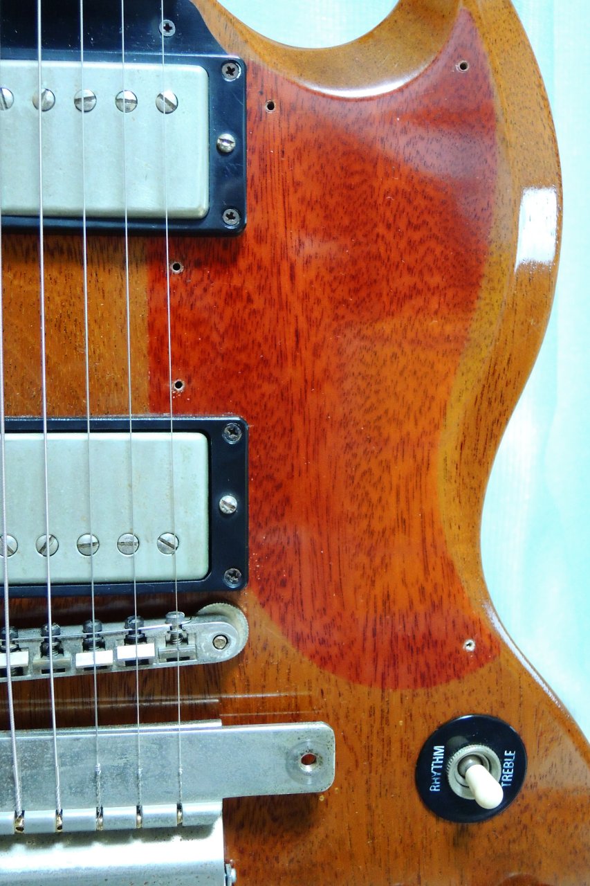 Facebookで「最近、SGが気になってんだよねぇ」と書き込んだら、某楽器店に勤めていた某氏から「こんなのありまっせ、どうでっか?」と話しが舞い込んできたので、数日お借りして使ってみてから購入したモノです。