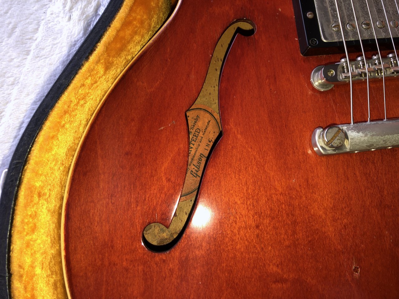 fホール内には赤の塗料が飛んでるので、たぶんリフィニッシュされているのでしょう(ショップは「オーバーラッカーのみ」と言い張ってましたが)。