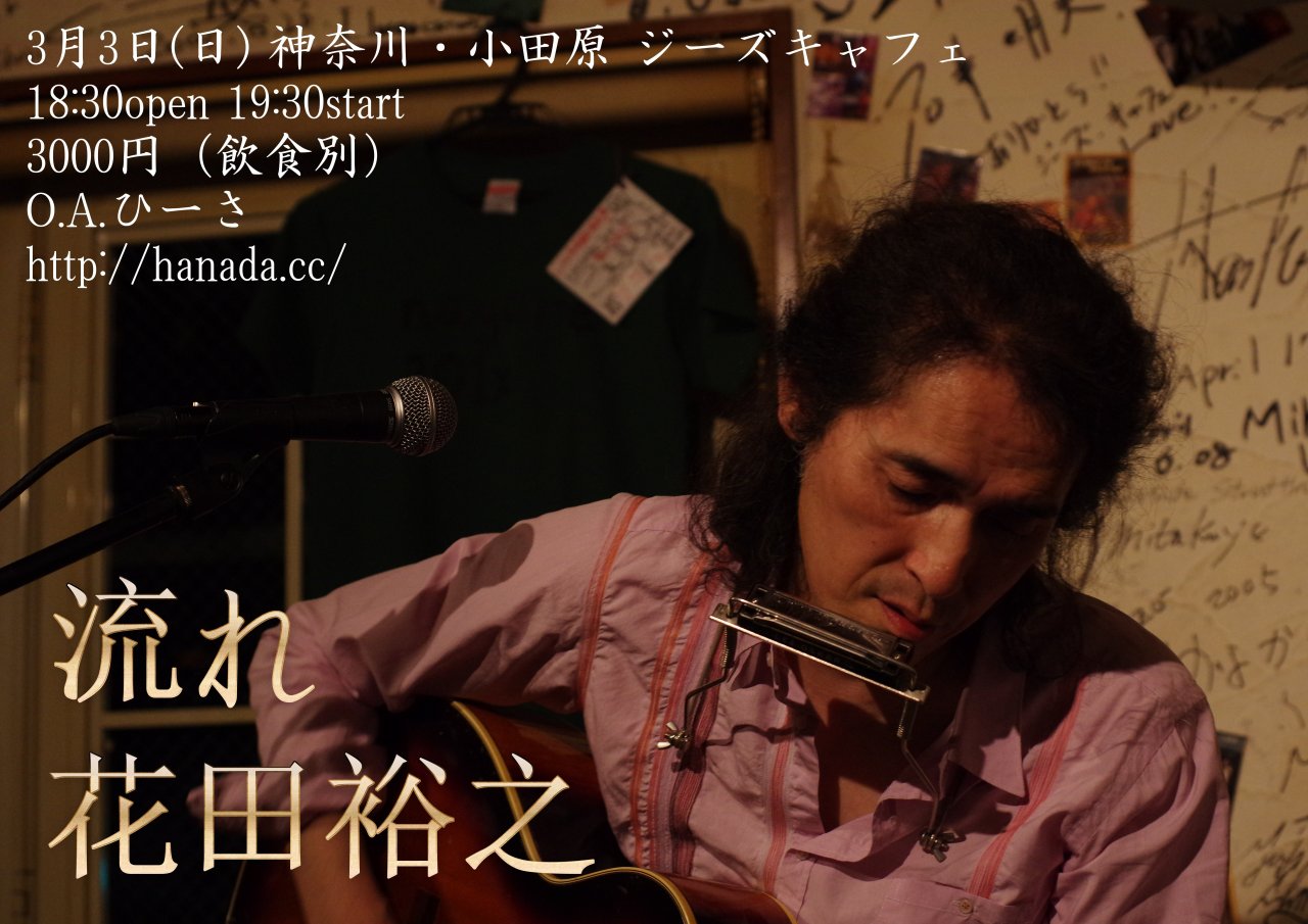 3日日曜は小田原ジーズキャフェで弾き語りです。