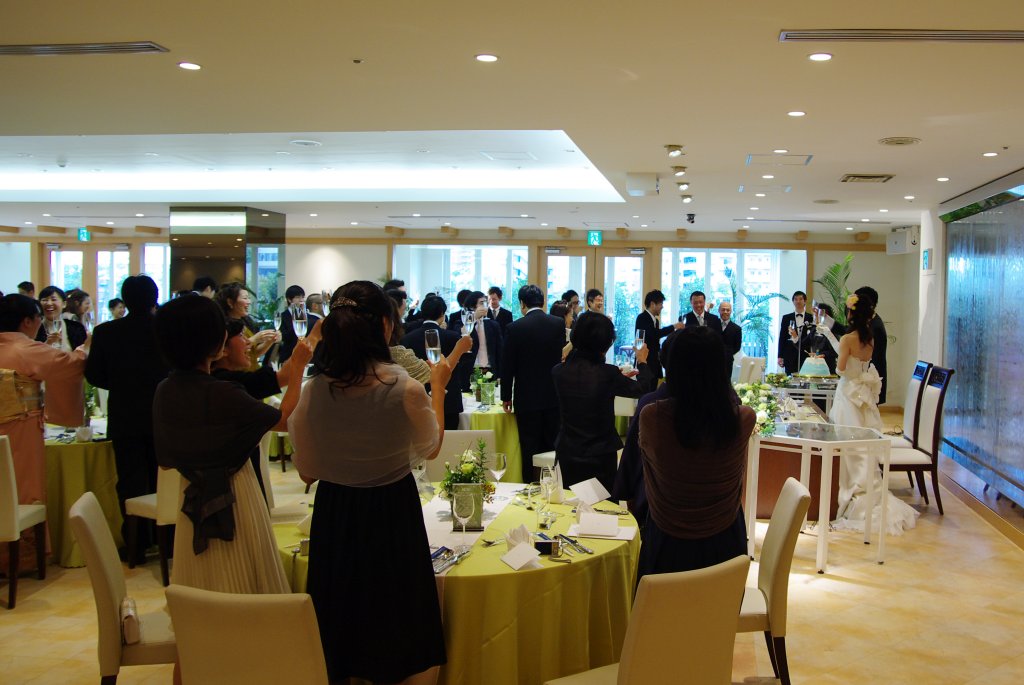 友人がPENTAXのカメラを持っていたので(K10D)借りてから二台体制で挑みました。広角側と望遠側で分けてレンズを装着。これが正解。披露宴の時はレンズ交換なんてやっている暇なんてありませんから。それと、持っていった一眼が全てダメになったなんて事があるといけないので、コンパクトカメラも持って行っておくと良いでしょう。