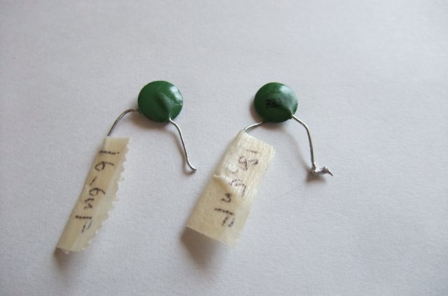 ヴィンテージコンデンサを購入して取り付けて「さすがヴィンテージ。音が抜けるぜ!」なんて言う方がいますが、そのコンデンサの静電容量は本当に表記通りの値ですかぁ?40~50年前のコンデンサは製造自体にムラがあり、許容誤差表記なんて有って無いようなもの。平気で値が外れてます。それに経年劣化で容量抜けをおこしているのも当たり前のようにあります。なので、一個一個現在の状態を把握し聴き比べないと、全く意味の無い事になってしまいます。