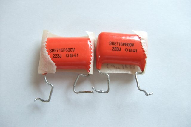 0.022μF/600V 2個 (実測値:0.0223μFと0.0227μF)