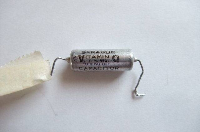 ハーチメックタイプコンデンサです。中にオイルが封入されています。そのオイルの名前がVitamin-Qって言うオイルなんです。今で言うコエンザイムQ10と同じだとか(噂です)。