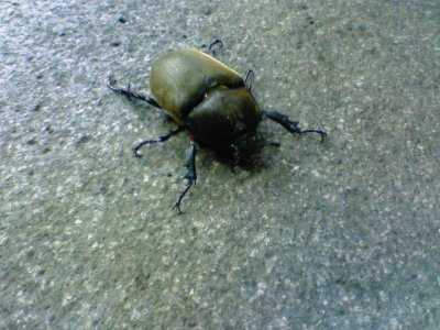 大和のガソリンスタンドで給油後にタイヤの空気圧を確認しようとしたら、カブトムシのメスを発見!デカイです。ってか、出てくるの早くねぇ?