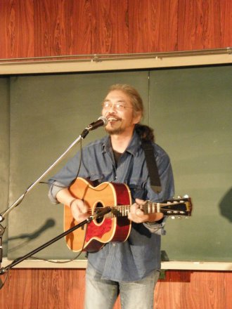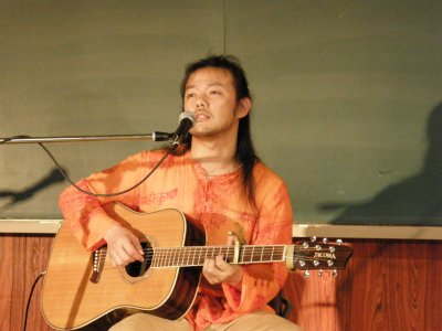 前夜祭はアコースティックLIVEと、MINI freak編集長のゴーリー田代&クレイジー石井のトークショウでございます。LIVEは一人30~40分くらい。まずは旅流草一郎さんから。